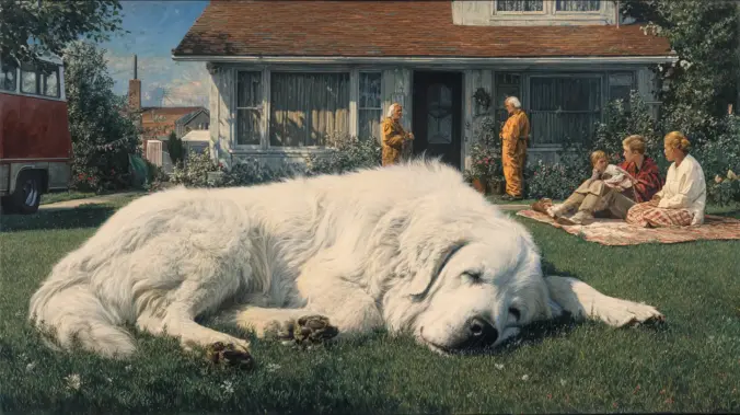 A família Miller adotou um cão da raça Grande Pirineus chamado “Urso”. Ele era enorme, peludo e incrivelmente preguiçoso. O Urso dormia 20 horas por dia. Dormia no sofá. Dormia no tapete. Dormia no corredor. Se a campainha tocasse, o Urso nem sequer levantava a cabeça. Apenas abria um olho, olhava para a porta e voltava a dormir.
